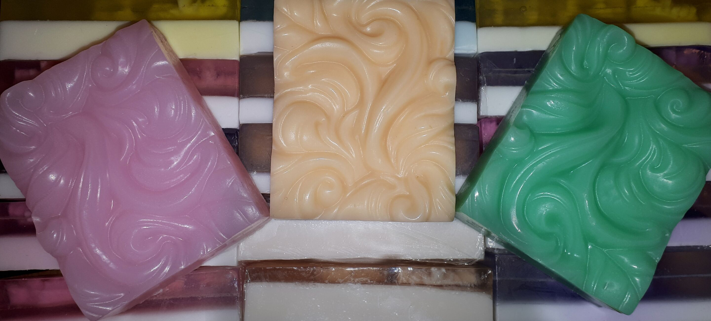 Our soaps are made from natural ingredients, glycerin soap base, essential oils and colored with plants and clays.